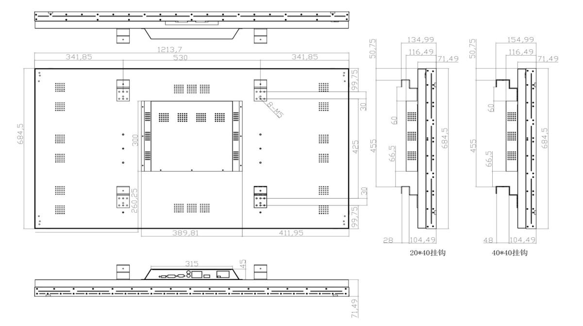 - Dimensions 1213.7(W)×684.5(H)×116.5(D)mm
